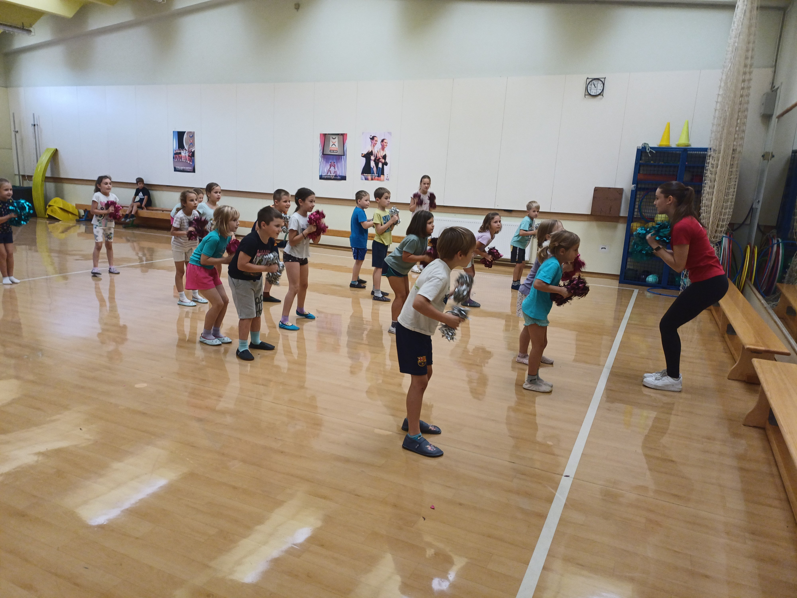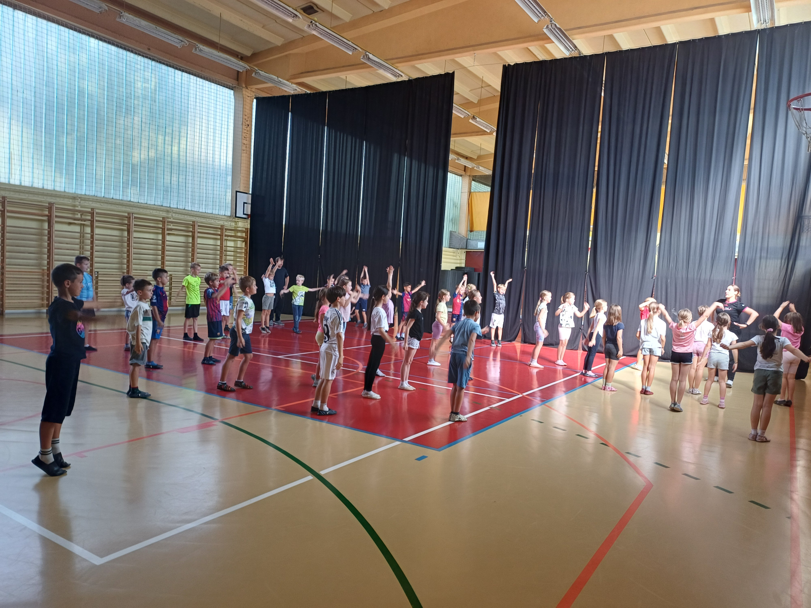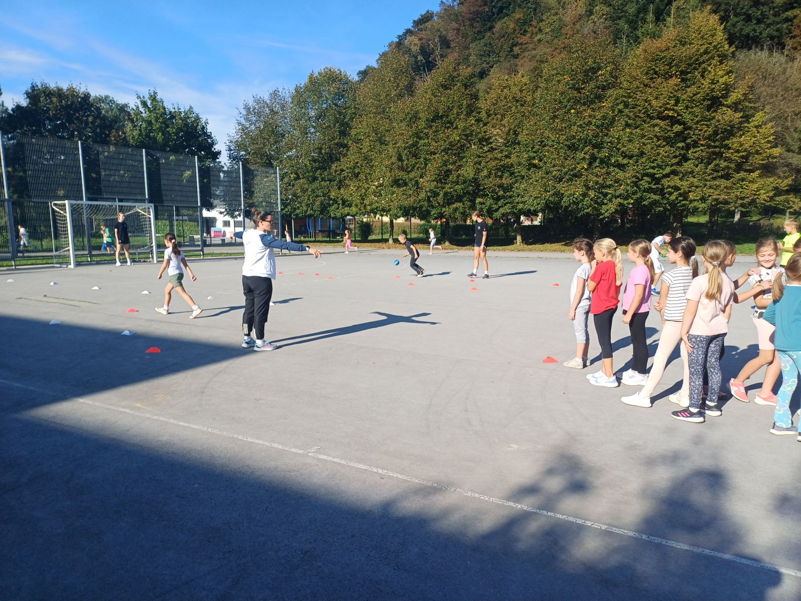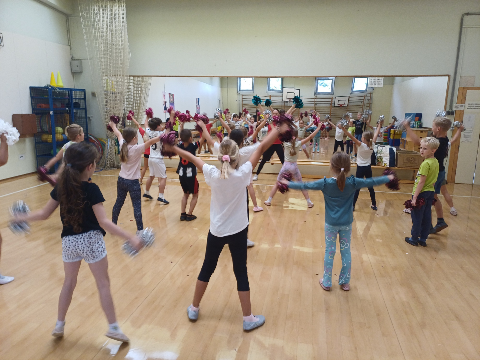 Istočasno so imeli učenci od 1. do 3. razreda športni dan, na katerem so se predstavili zunanji izvajalci športnih dejavnosti. Na igrišču so se učenci spoznali z rokometom. V mali telovadnici so nam Zoja Kogovšek, Helena Vidić in David Malavašič predstavili kate, ki so se jih naučili pri karateju. V veliki telovadnici je Mitja Petkovšek navdušil učence nad gimnastiko. Na koncu so učenci še zaplesali s plesno navijaško skupino Žabice.