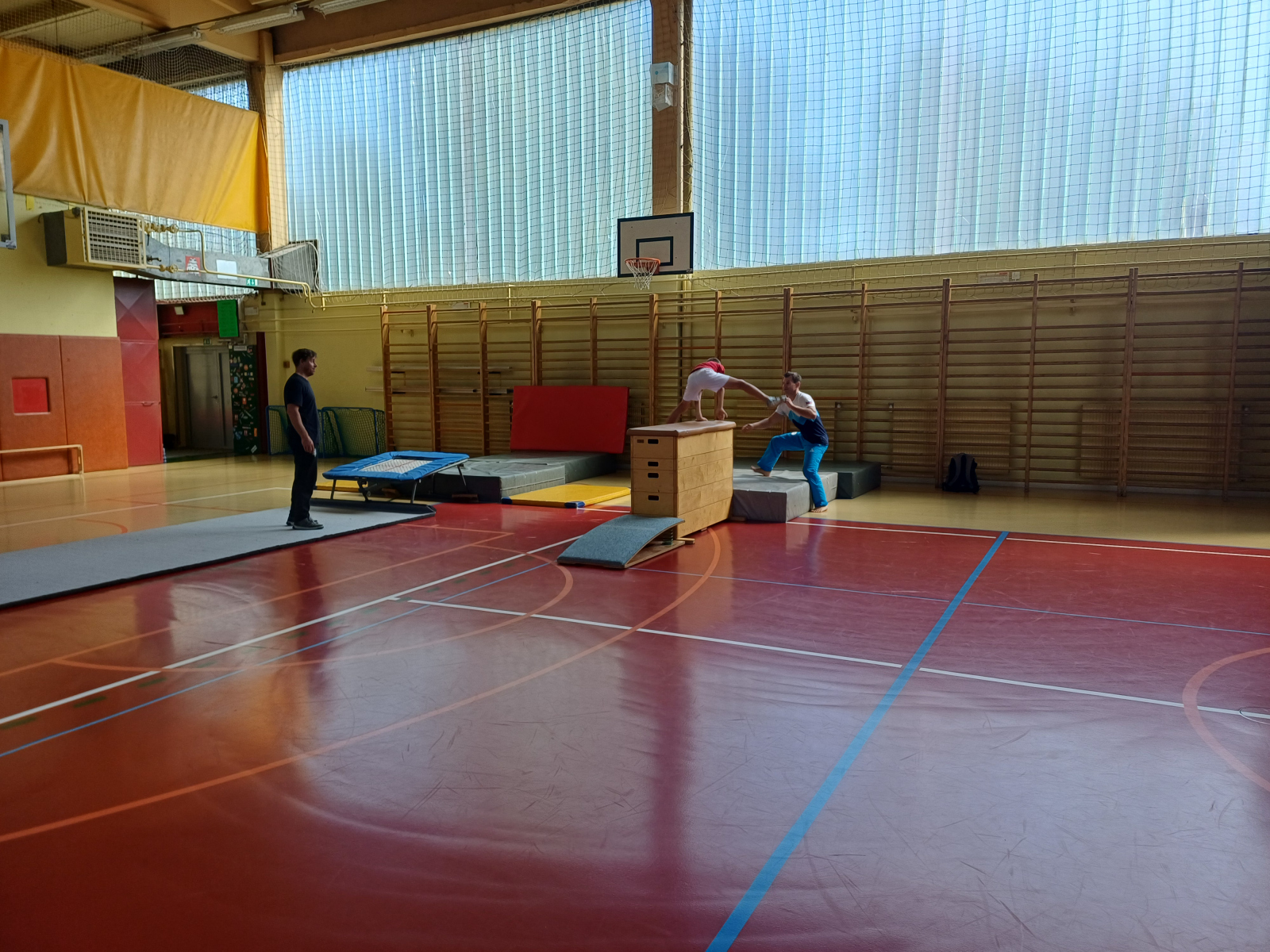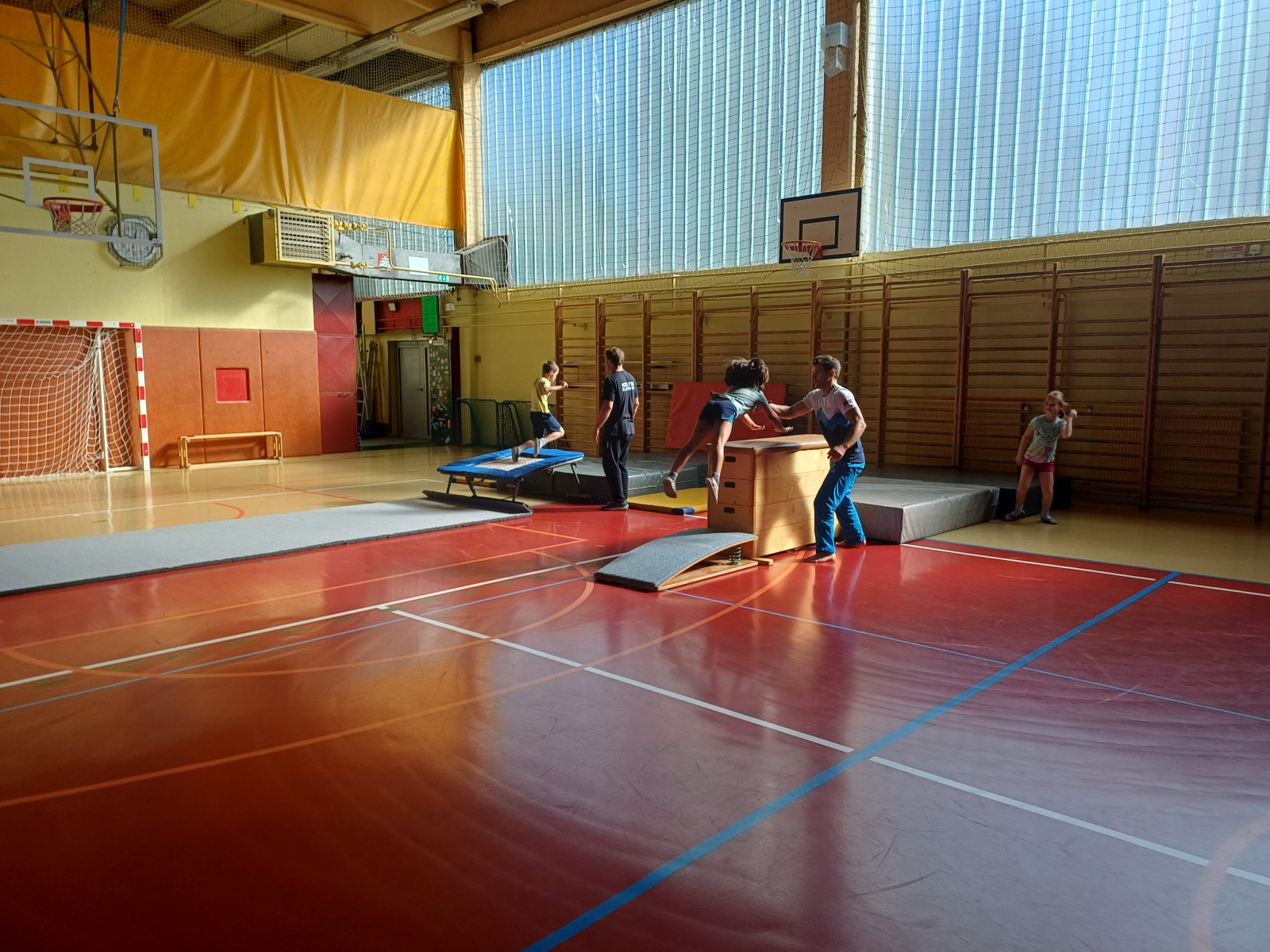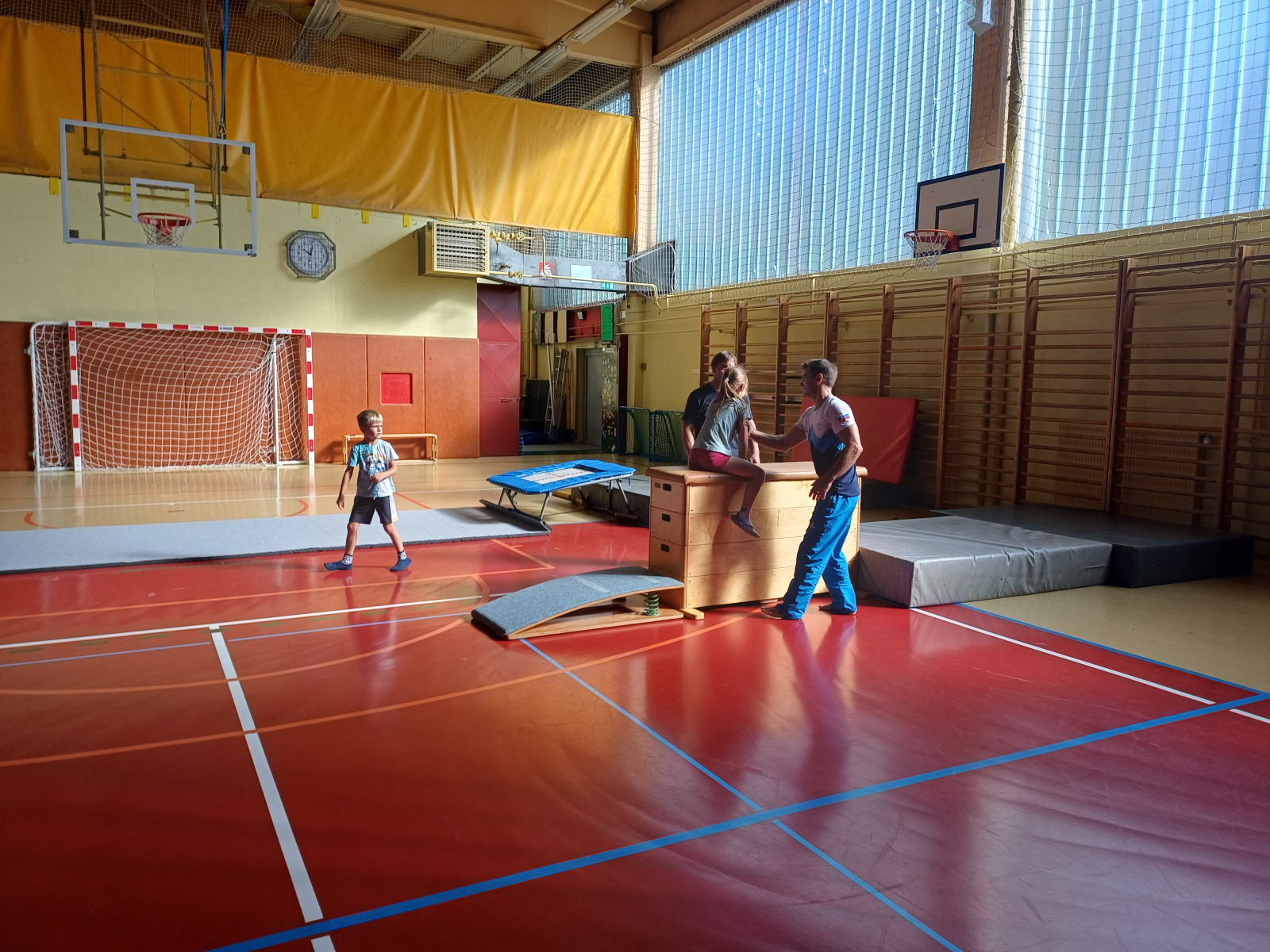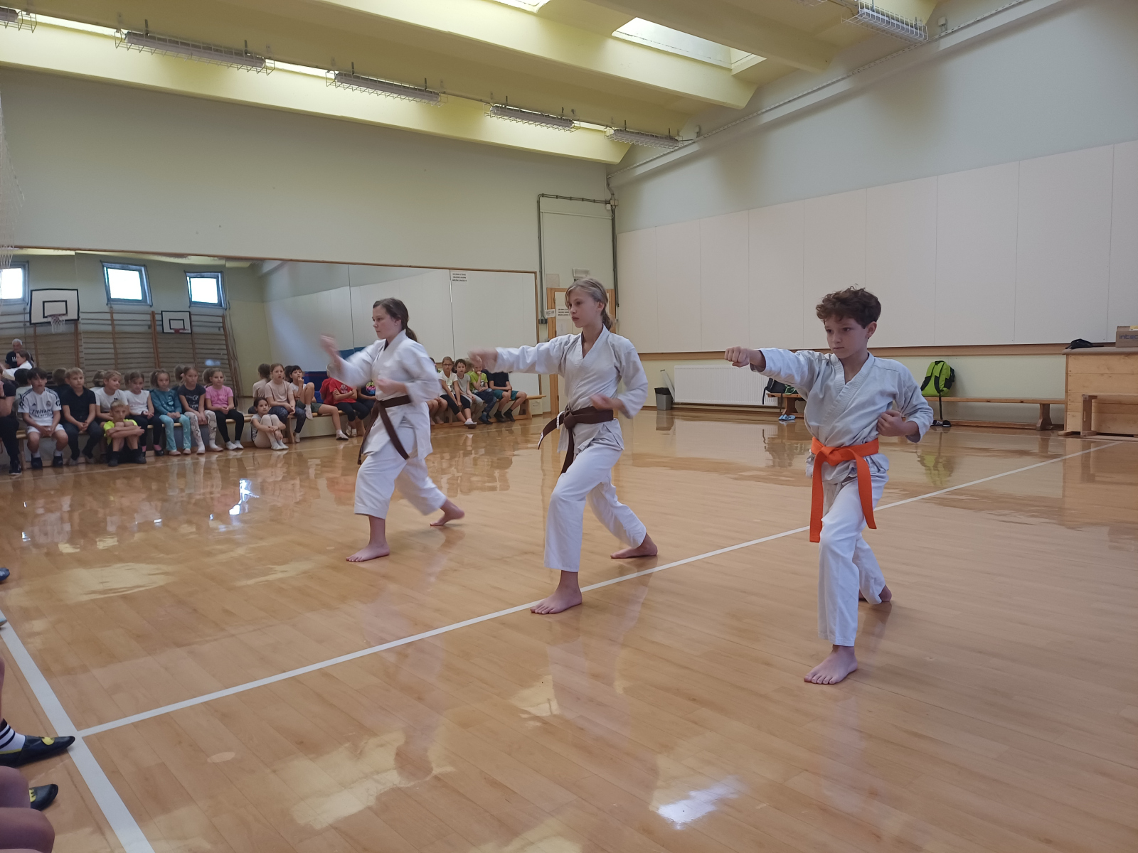Istočasno so imeli učenci od 1. do 3. razreda športni dan, na katerem so se predstavili zunanji izvajalci športnih dejavnosti. Na igrišču so se učenci spoznali z rokometom. V mali telovadnici so nam Zoja Kogovšek, Helena Vidić in David Malavašič predstavili kate, ki so se jih naučili pri karateju. V veliki telovadnici je Mitja Petkovšek navdušil učence nad gimnastiko. Na koncu so učenci še zaplesali s plesno navijaško skupino Žabice.